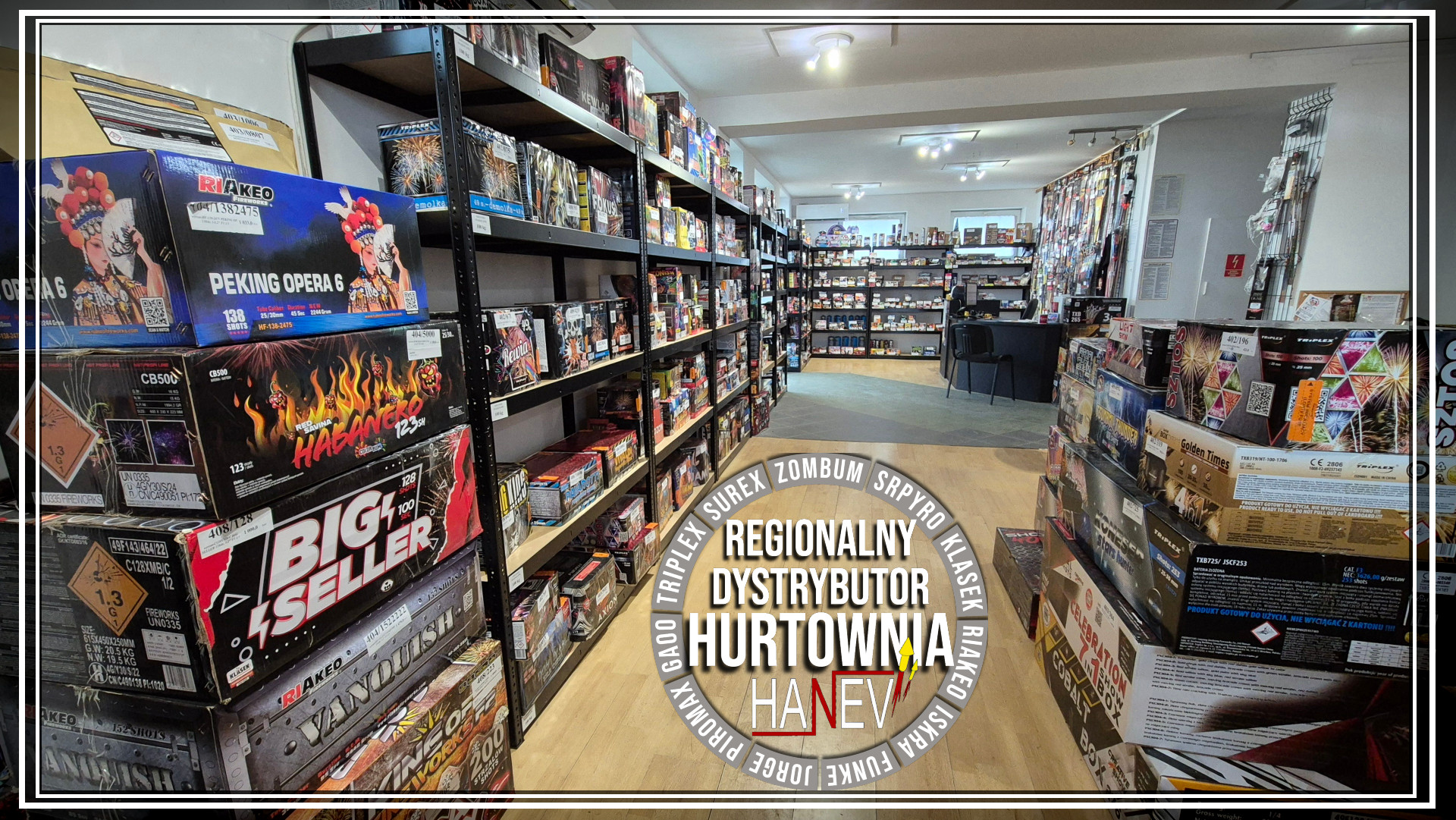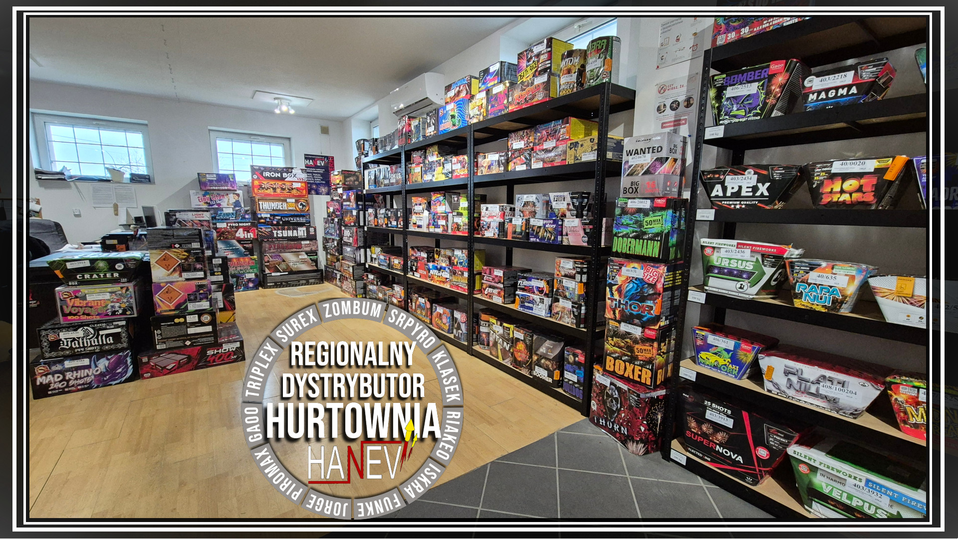 Mieścimy się w województwie kujawsko-pomorskim, w Witoldowie, niedaleko Bydgoszczy. Posiadamy magazyny pirotechniczne: MG1 dla wyrobów pirotechnicznych klasy F1; F2; F3; P1; T1; oraz magazyn koncesyjny dla wyrobów pirotechnicznych klasy F4. Oba magazyny spełniają wymagania magazynowania materiałów wybuchowych (materiały pirotechniczne, wyroby pirotechniczne) klasy ADR: 1.3G; 1.4G; 1.4S zgodnie z opinią WITU, nr WITU/51/2021 , z dnia 21.05.2021 r.
